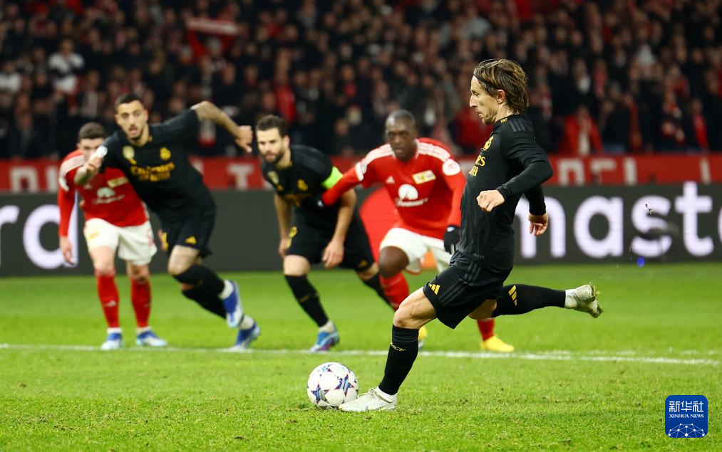 12月12日,皇家马德里队球员莫德里奇(前右)在比赛中主罚点球。新华社/路透
