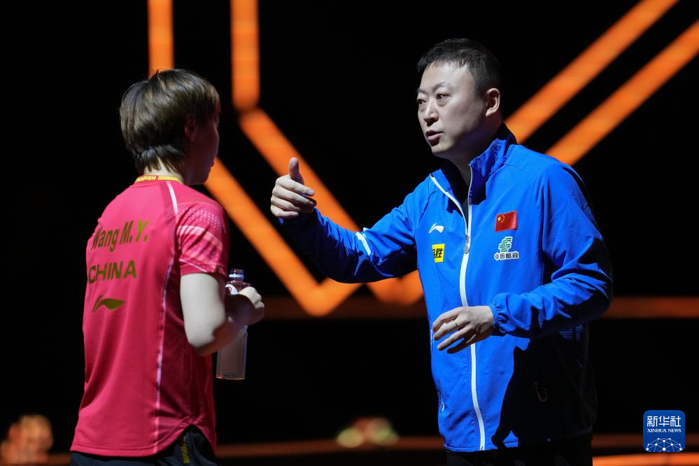 12月15日,王曼昱(左)接受教练马琳的指导。新华社记者 张笑宇 摄