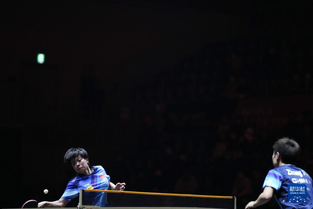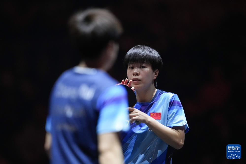 12月16日,中国选手王艺迪(左)在比赛中回球。新华社记者 张笑宇 摄