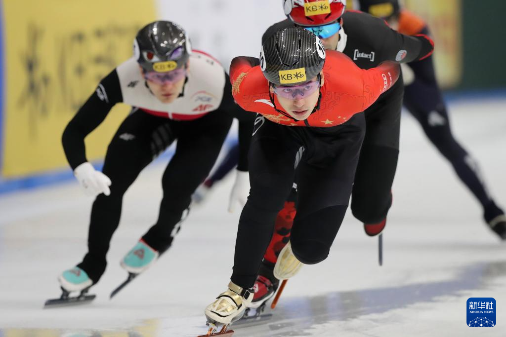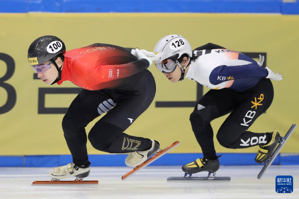 12月15日,中国选手刘少昂(右一)在男子500米预赛中。新华社记者 姚琪琳 摄
