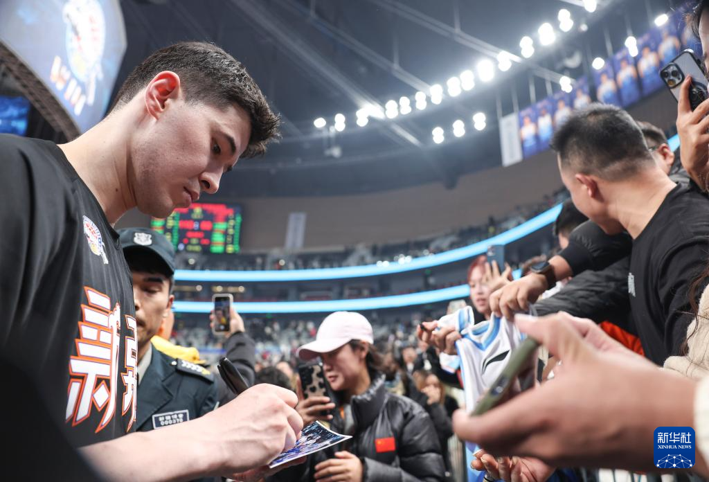 12月15日,新疆伊力特队球员阿不都沙拉木为球迷签名。新华社记者 胡虎虎 摄