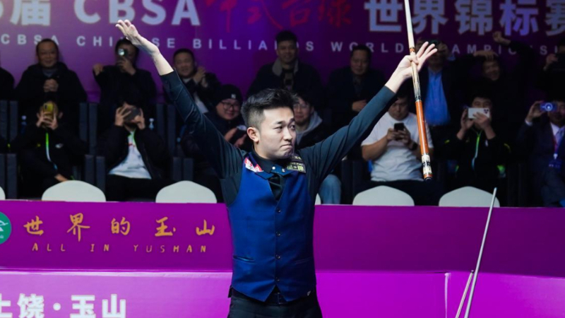 新华社南昌12月16日电 第六届中国台球协会中式台球世界锦标赛16日在江西省上饶市玉山县收官。当日进行的男子组决赛,赵汝亮在两位“00后”的对话中以41:28完胜沈申义,首夺中式台球世锦赛冠军。