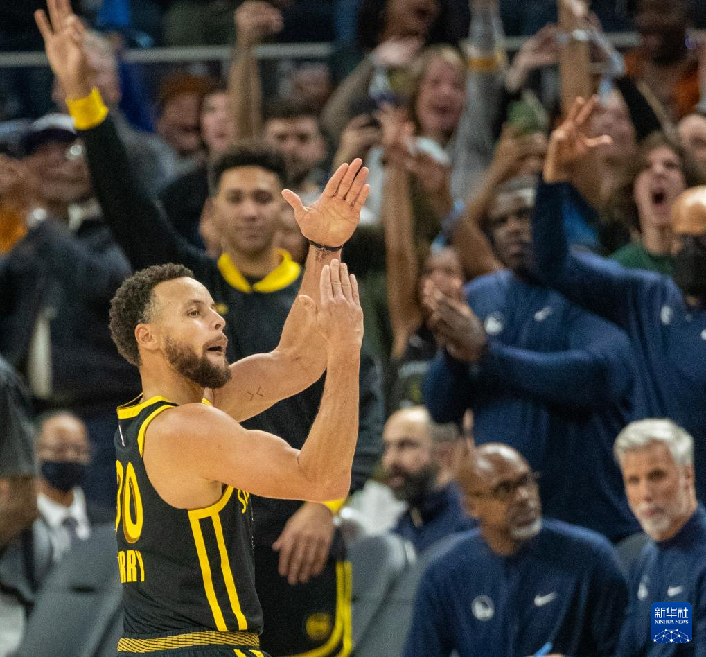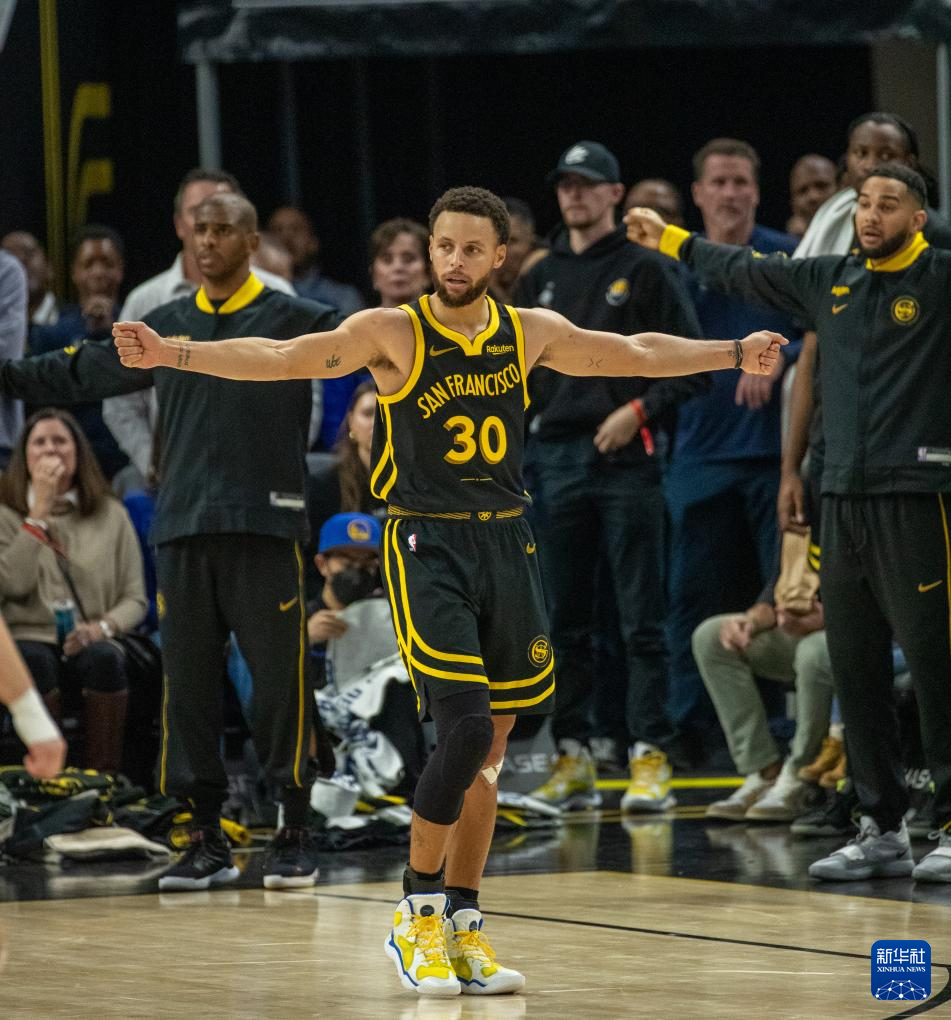 12月16日,勇士队球员库里(前)在比赛中。新华社发(董旭东摄)