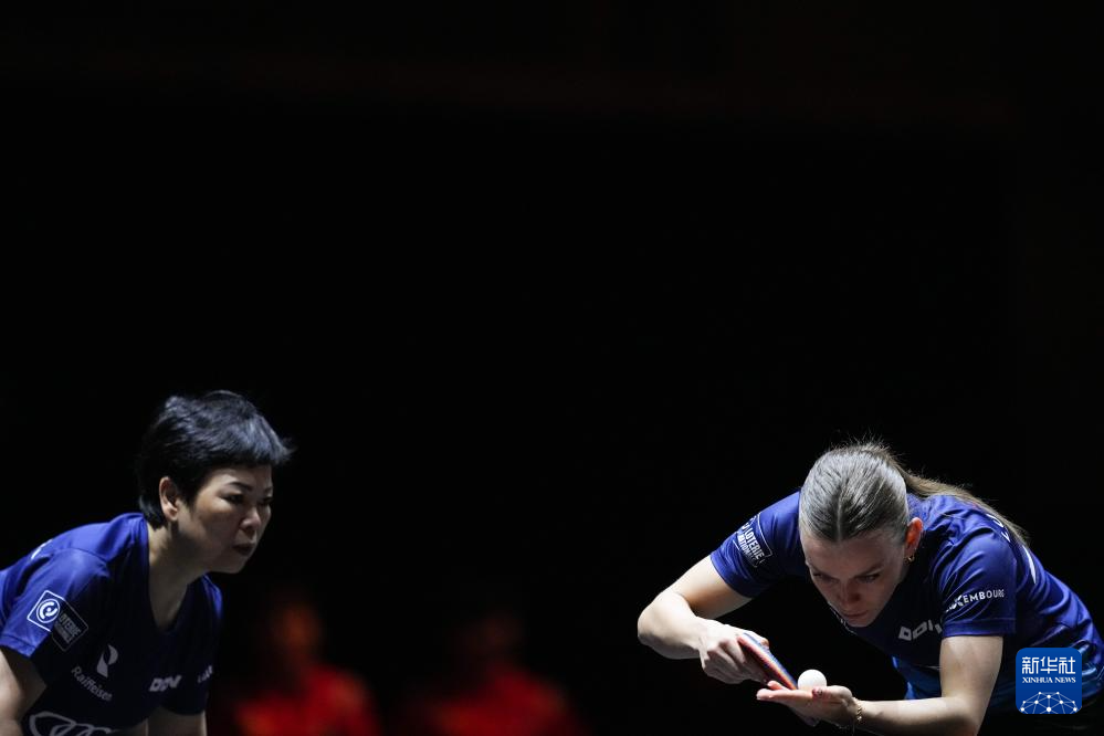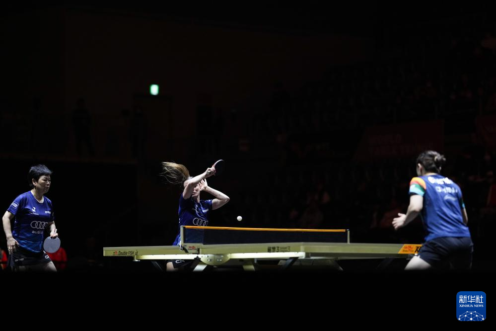 12月16日,倪夏莲(左)/德努特(中)在比赛中。新华社记者 张笑宇 摄
