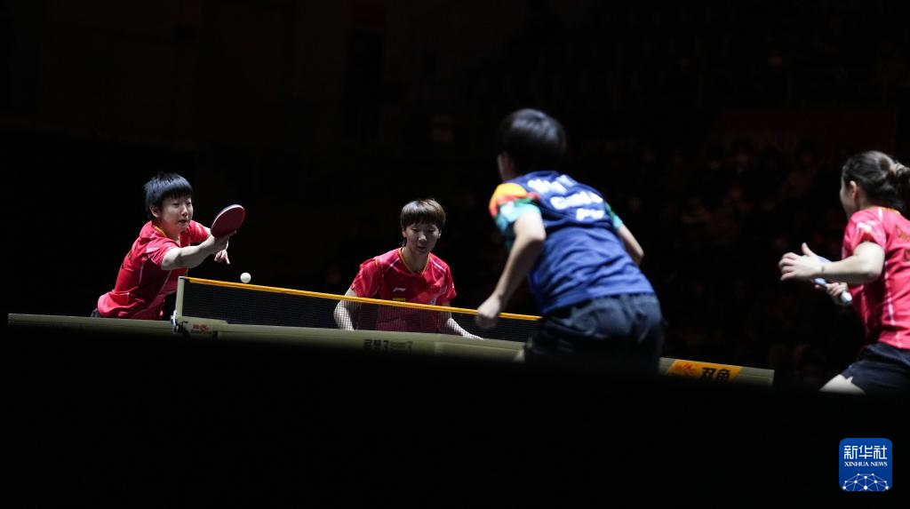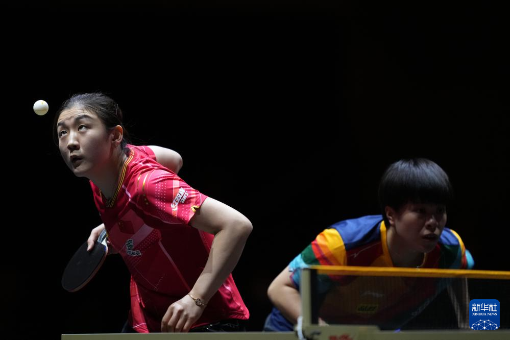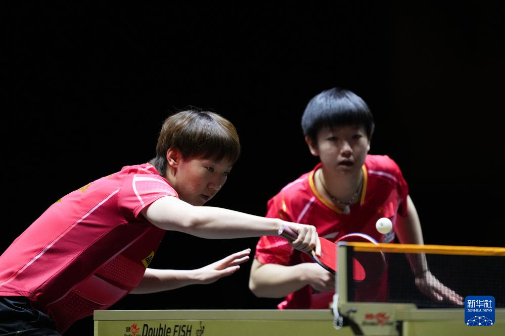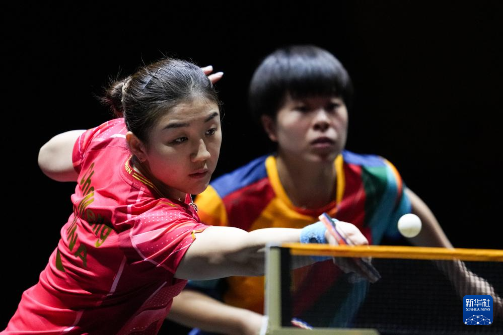12月17日,王曼昱/孙颖莎(右)在比赛中。新华社记者 张笑宇 摄