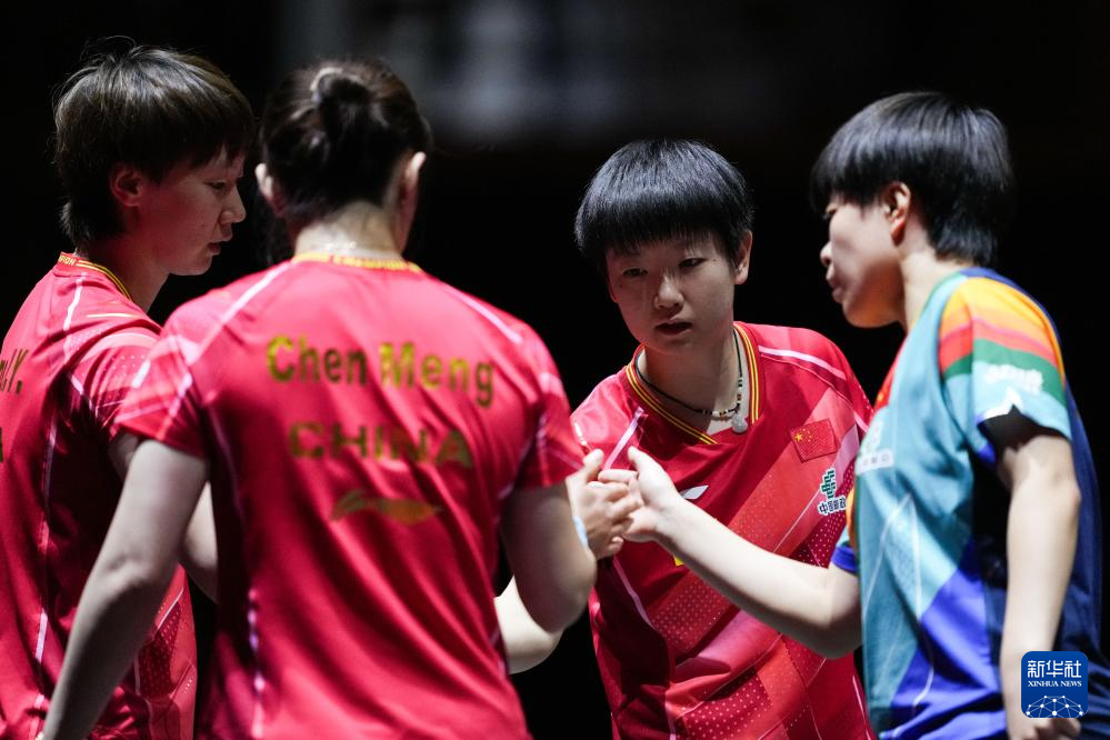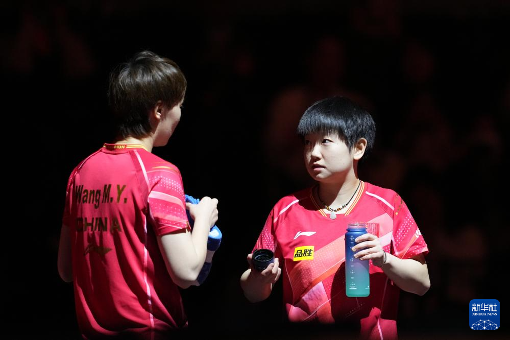 12月17日,王曼昱(左)/孙颖莎在比赛间歇交流。新华社记者 张笑宇 摄