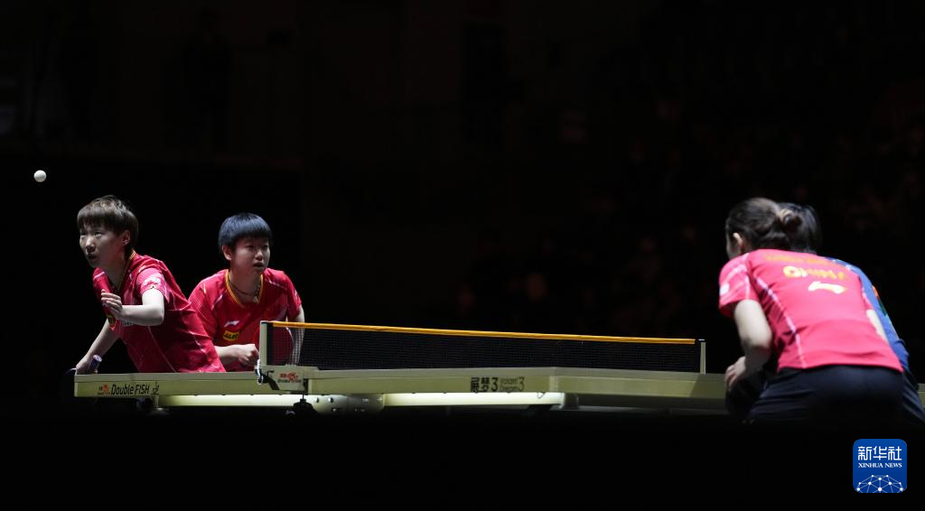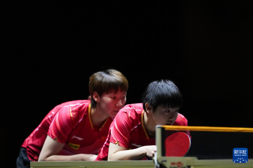 12月17日,王曼昱(左)/孙颖莎在比赛中。新华社记者 张笑宇 摄