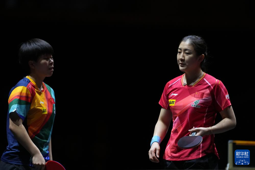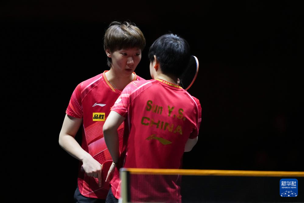 当日,在2023年世界乒乓球职业大联盟(WTT)女子总决赛双打半决赛中,中国组合王曼昱/孙颖莎以3比1战胜队友陈梦/王艺迪,晋级决赛。