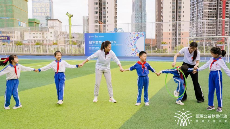 15日,杨扬和冠军运动员以及运动员志愿者前往深圳龙岗区的四所中小学,分享冠军成长故事,和同学们一起运动、一起游戏,与孩子们度过了一个虽然很耗体能、但很快乐和难忘的一天。