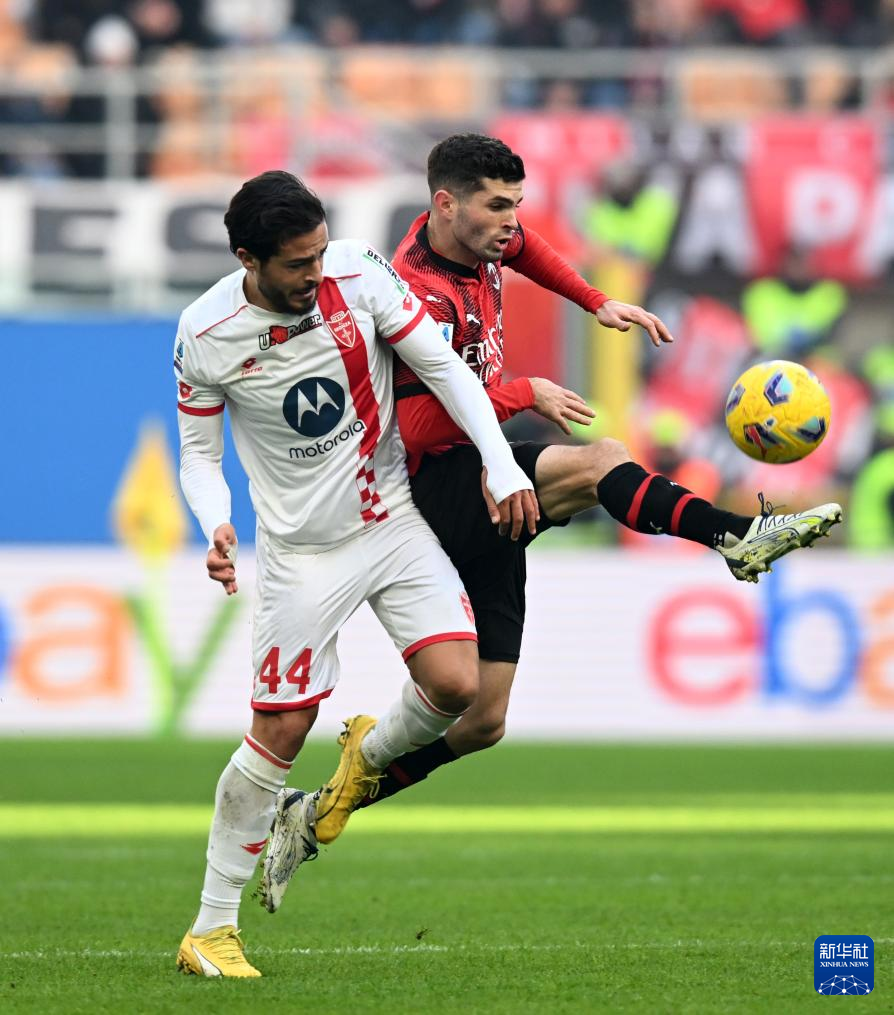 12月17日,AC米兰队球员普利希奇(右)与蒙扎队球员卡尔博尼在比赛中拼抢。新华社发(阿尔贝托·林格利亚摄)