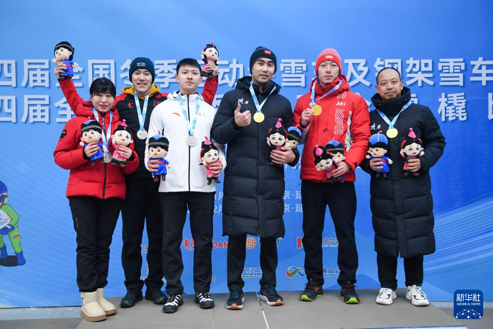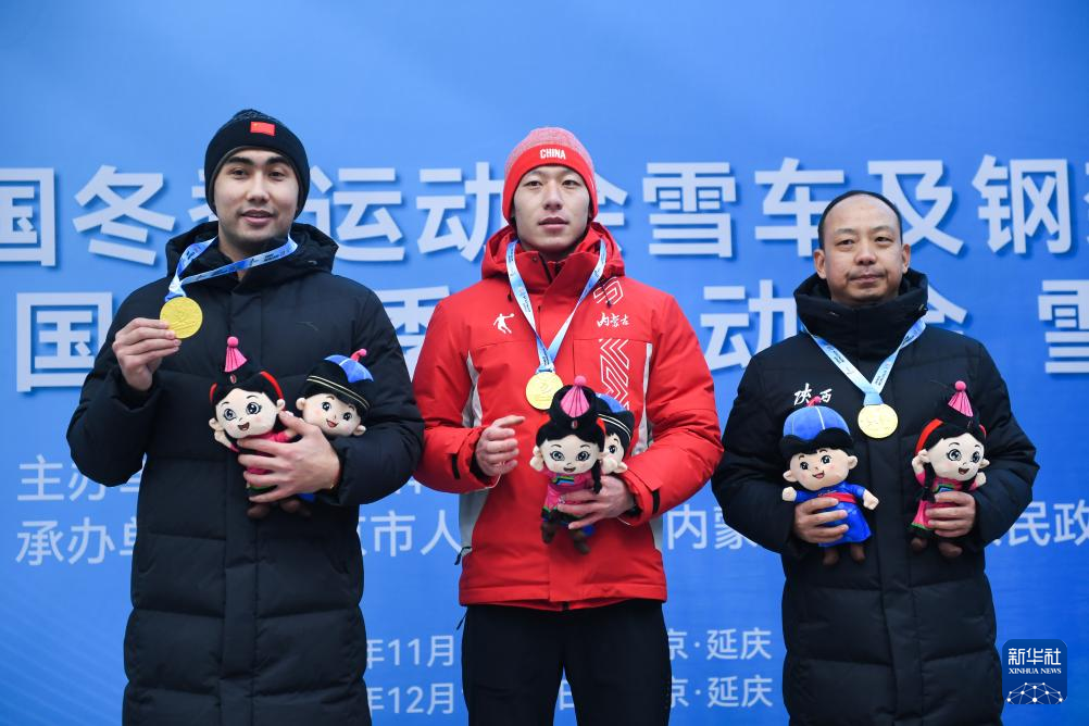 当日,第十四届全国冬季运动会男子双人雪橇项目颁奖仪式在国家雪车雪橇中心进行。