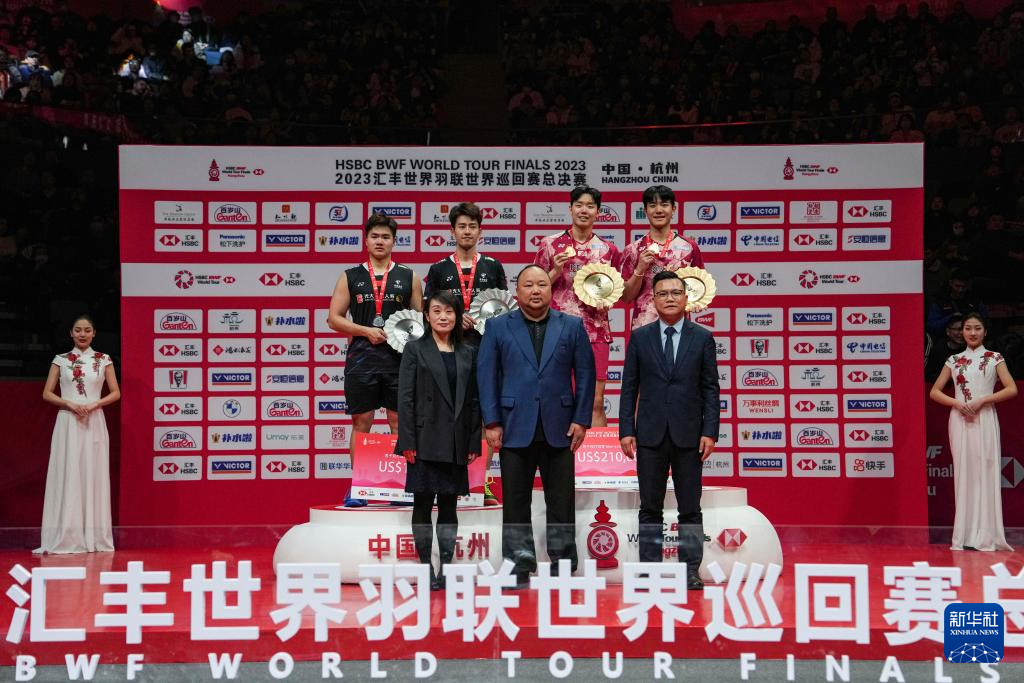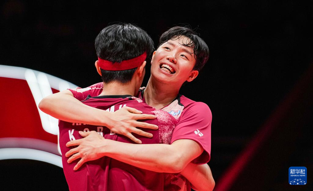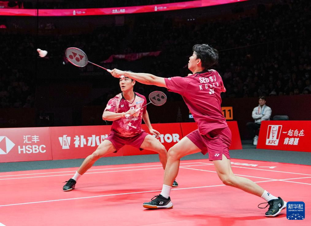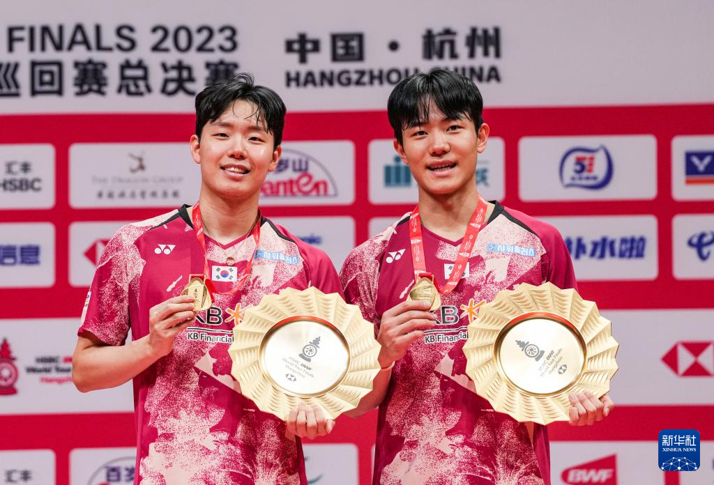 当日,在杭州举行的2023世界羽联世界巡回赛总决赛男子双打决赛中,韩国组合姜珉赫/徐承宰以2比0战胜中国组合梁伟铿/王昶,获得冠军。