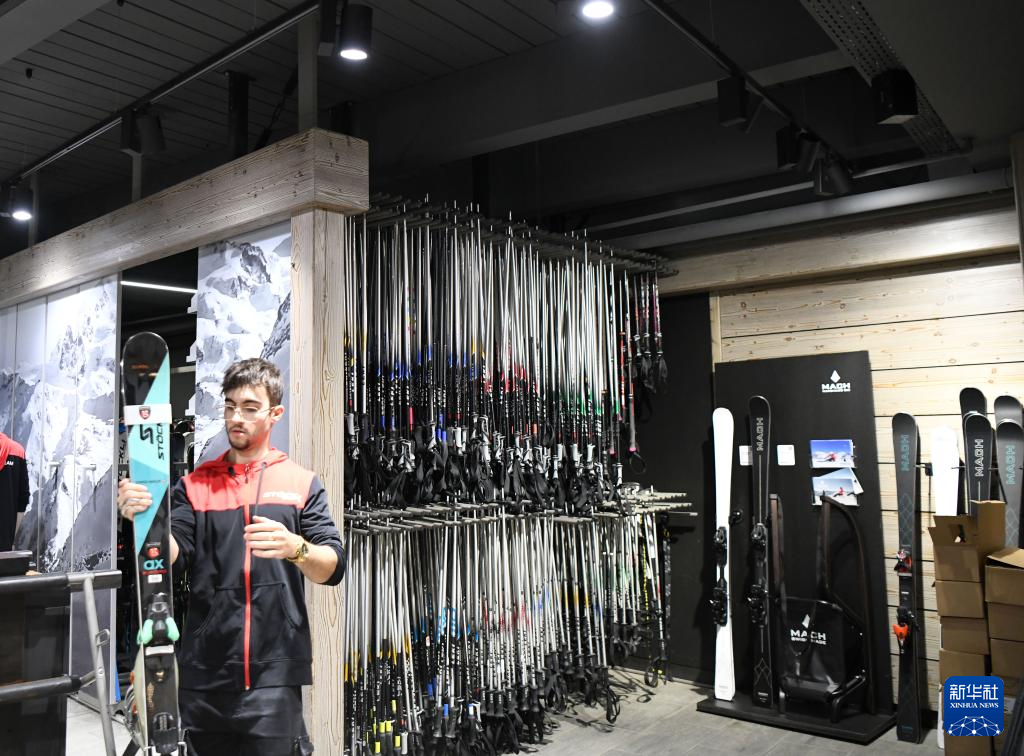 12月10日,在采尔马特,工作人员在一家冬季运动用品商店查看货物。新华社记者 连漪 摄