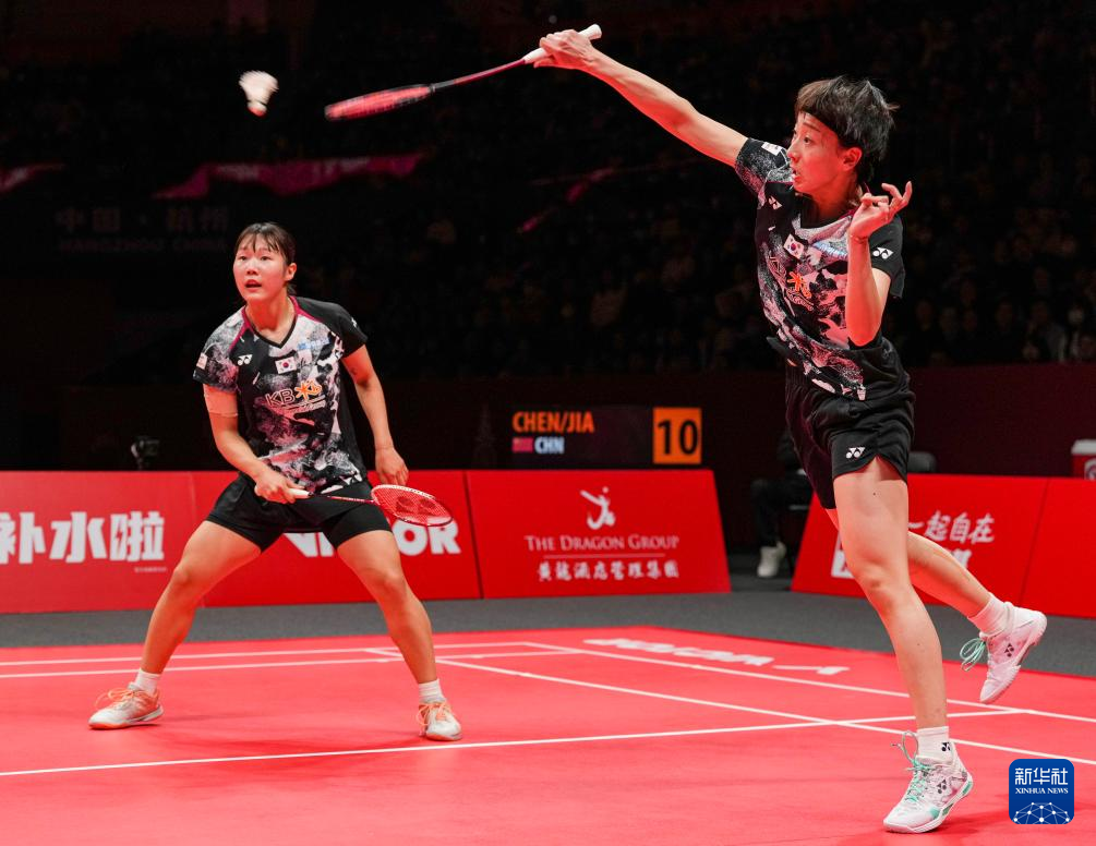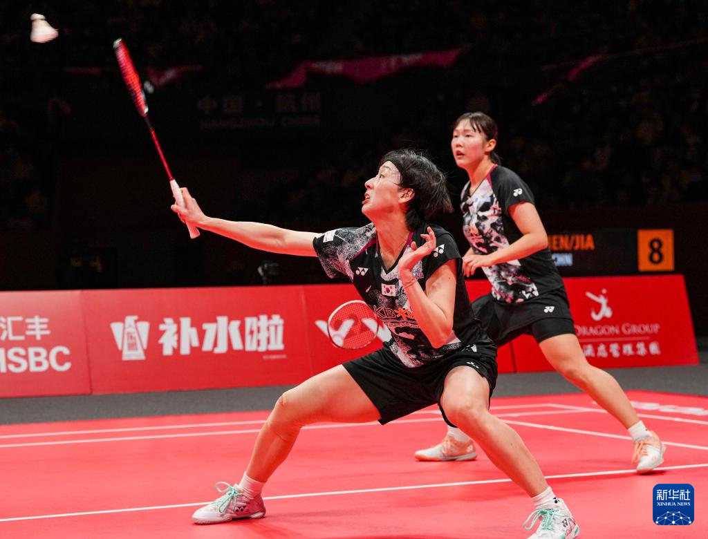当日,在杭州举行的2023世界羽联世界巡回赛总决赛女子双打决赛中,中国组合陈清晨/贾一凡以2比0战胜韩国组合白荷娜/李绍希,获得冠军。