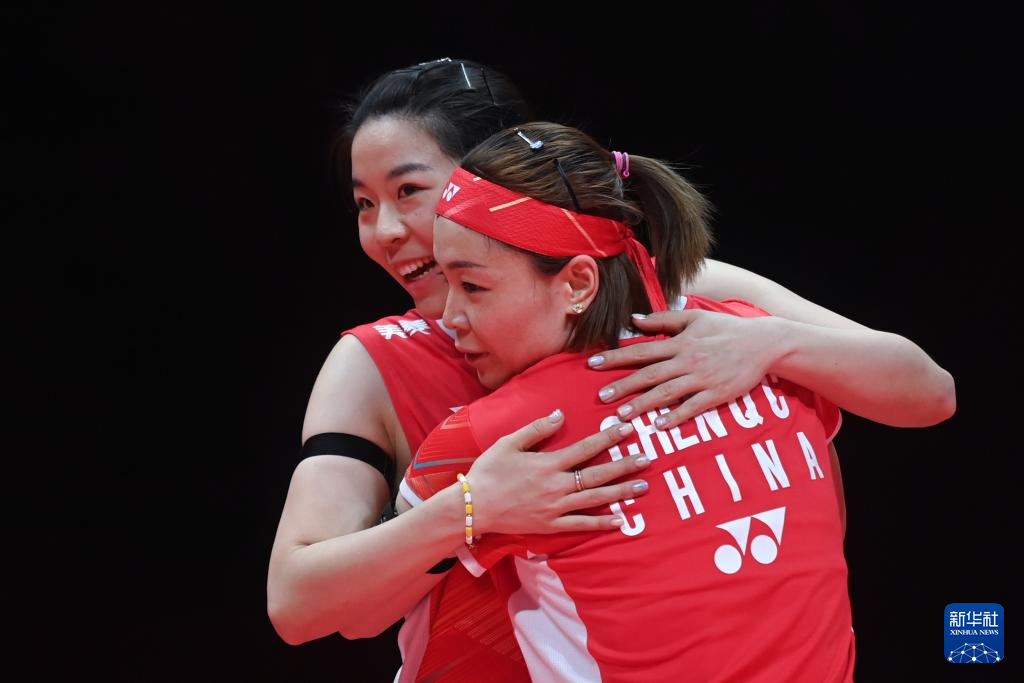 12月17日,陈清晨(右)/贾一凡在夺冠后庆祝。新华社记者 黄宗治 摄