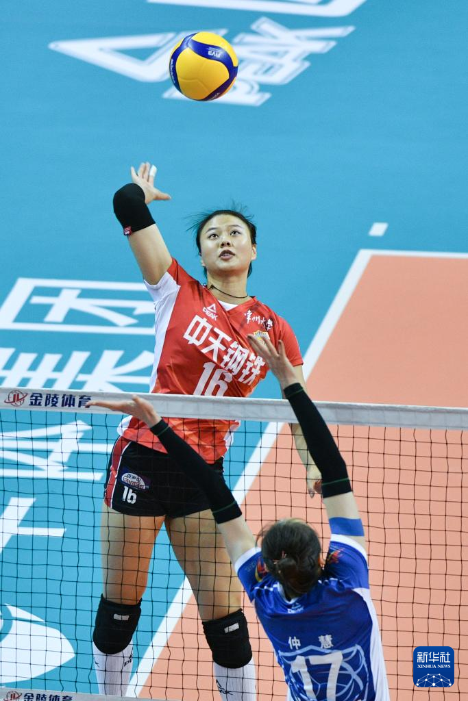 当日,在江苏常州举行的2023-2024赛季中国女排超级联赛第一阶段(小组赛)B组第14轮比赛中,江苏中天钢铁队主场以3比2战胜上海光明优倍队。