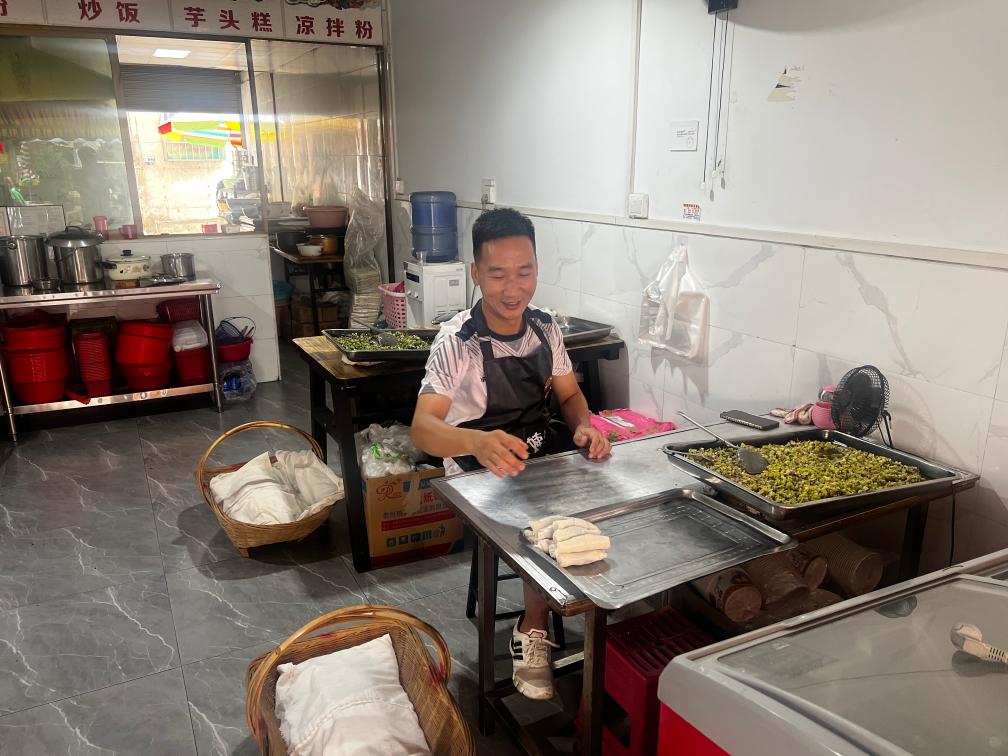 “村超”前的一年,董永恒还只是一名在榕江卖卷粉的店主。作为当地一道知名小吃,榕江卷粉有很多招牌商家,但董永恒从姑妈手中接手小店后,曾在2022年榕江举行的美食赛中荣获“卷粉王”称号。
