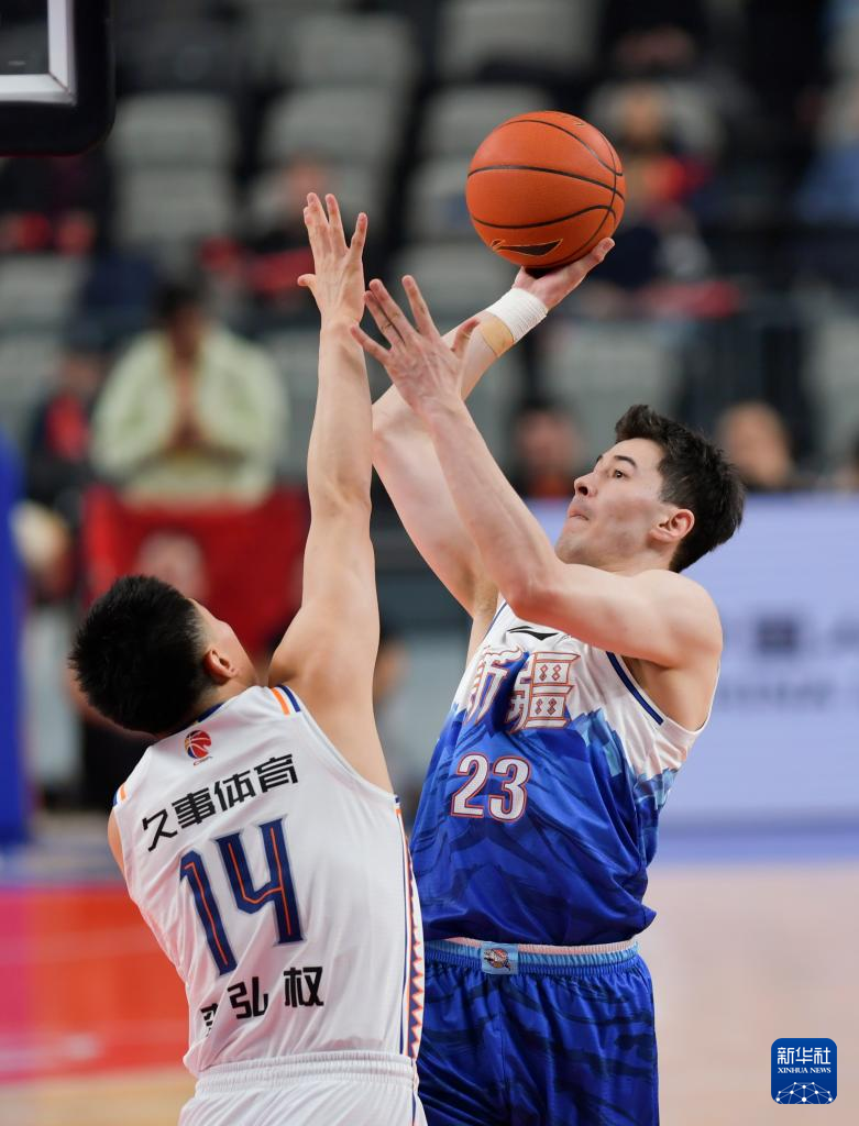 当日,在2023-2024赛季中国男子篮球职业联赛(CBA)常规赛第19轮比赛中,新疆伊力特队主场以109比104战胜上海久事队。