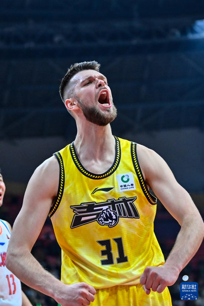 12月20日,吉林九台农商银行队球员尼古拉斯·拉科塞维奇在得分后庆祝。新华社记者 颜麟蕴 摄