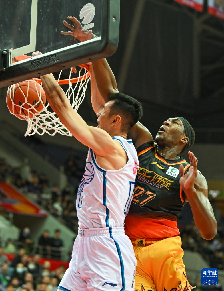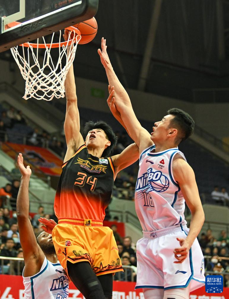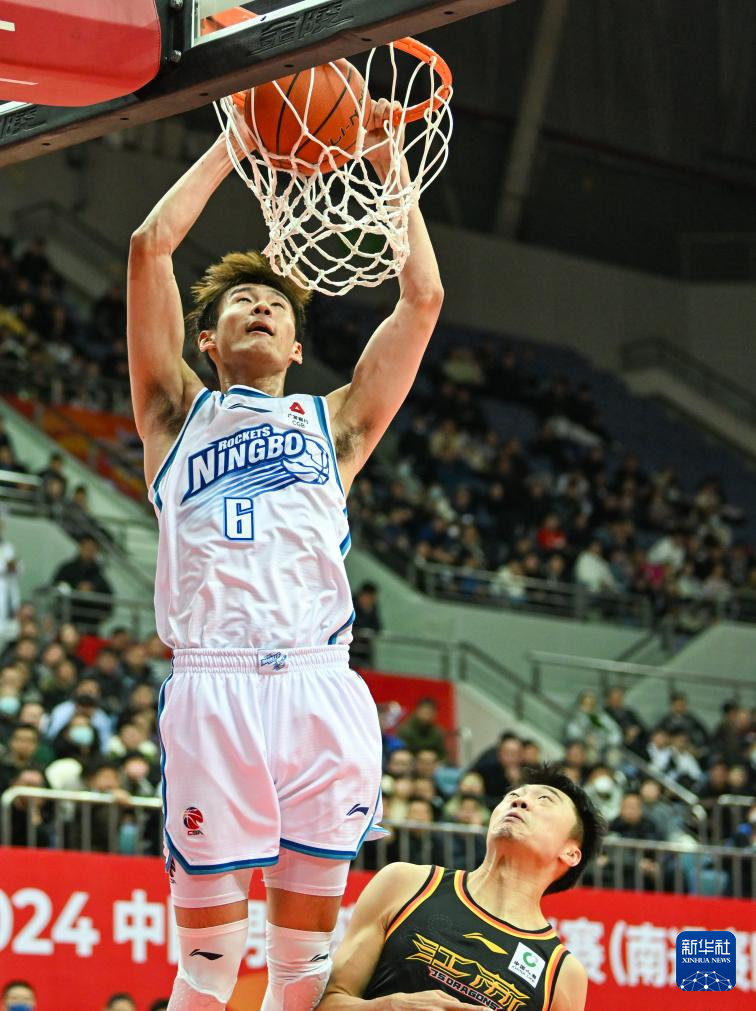 12月20日,宁波町渥队球员王俊杰在比赛中扣篮。新华社发(王须中摄)