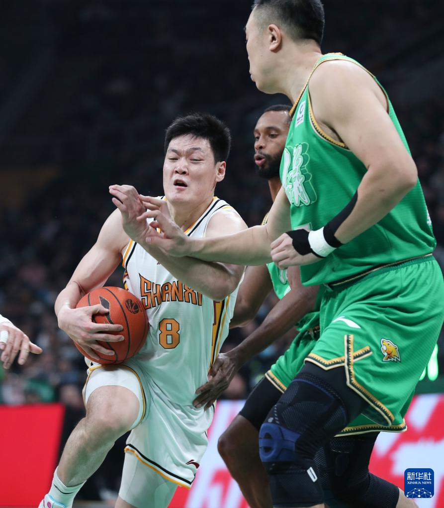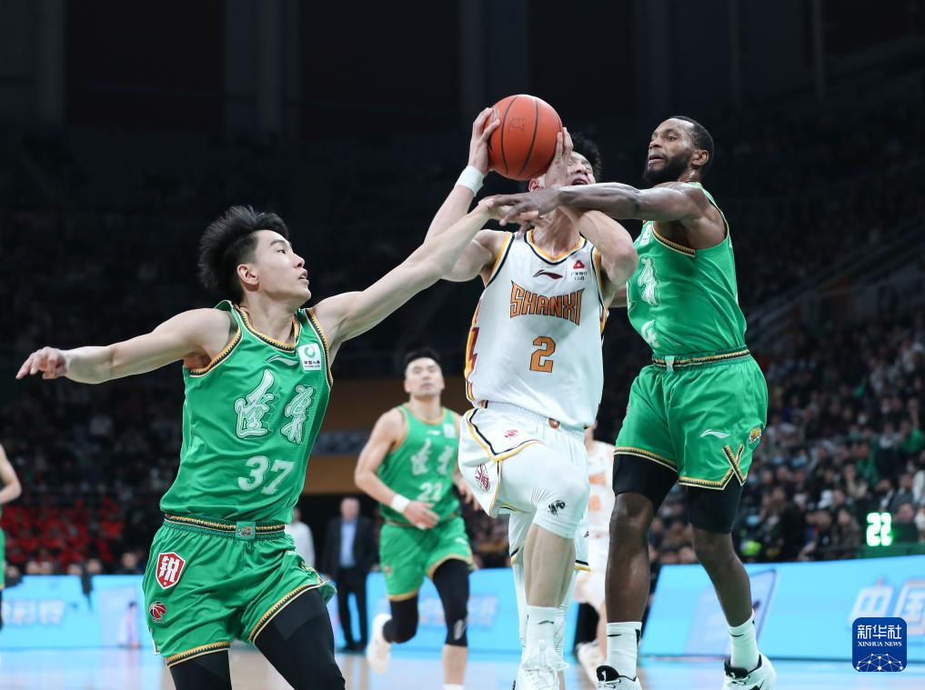12月20日,山西汾酒队球员王汝恒(中)在比赛中进攻受阻。新华社记者 龙雷 摄