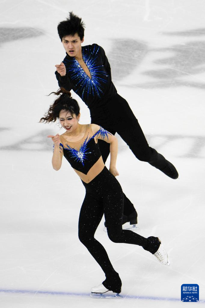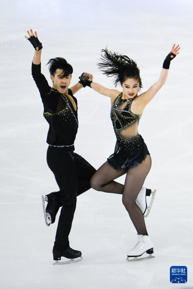 12月22日,北京市冬季运动管理中心组合石尚(右)/吴楠在冰上舞蹈韵律舞比赛中。新华社发(王立群摄)