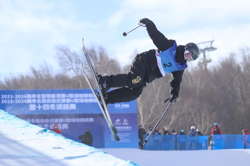 当日,2023-2024赛季全国自由式滑雪U型场地技巧锦标赛暨十四冬资格赛在河北张家口崇礼云顶滑雪公园举行。