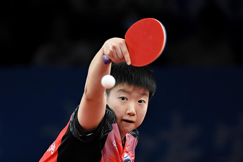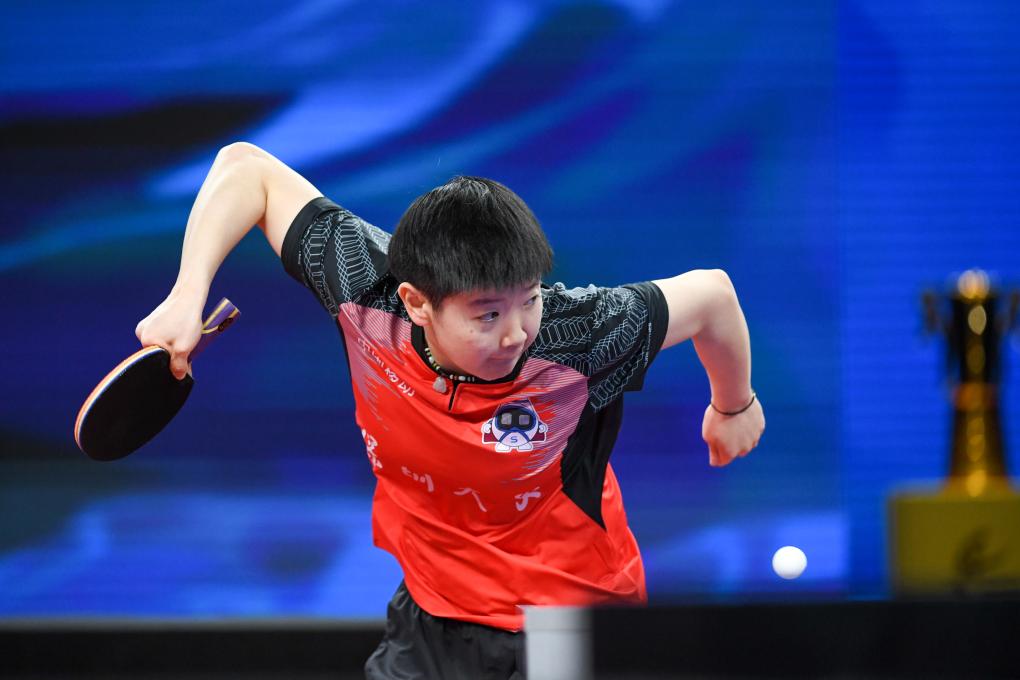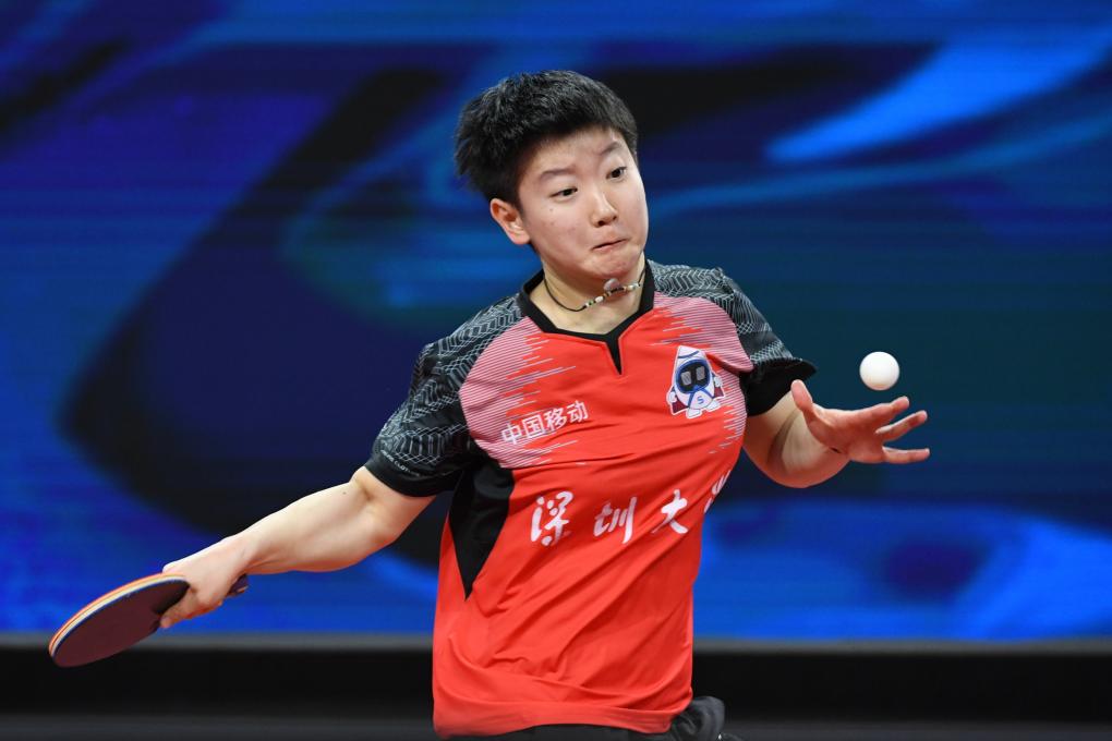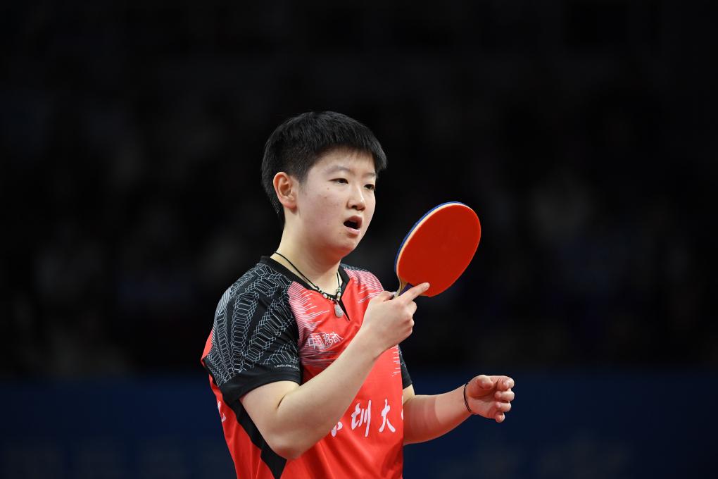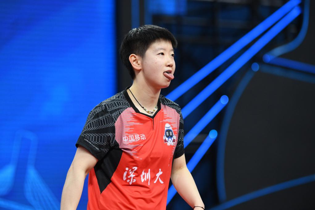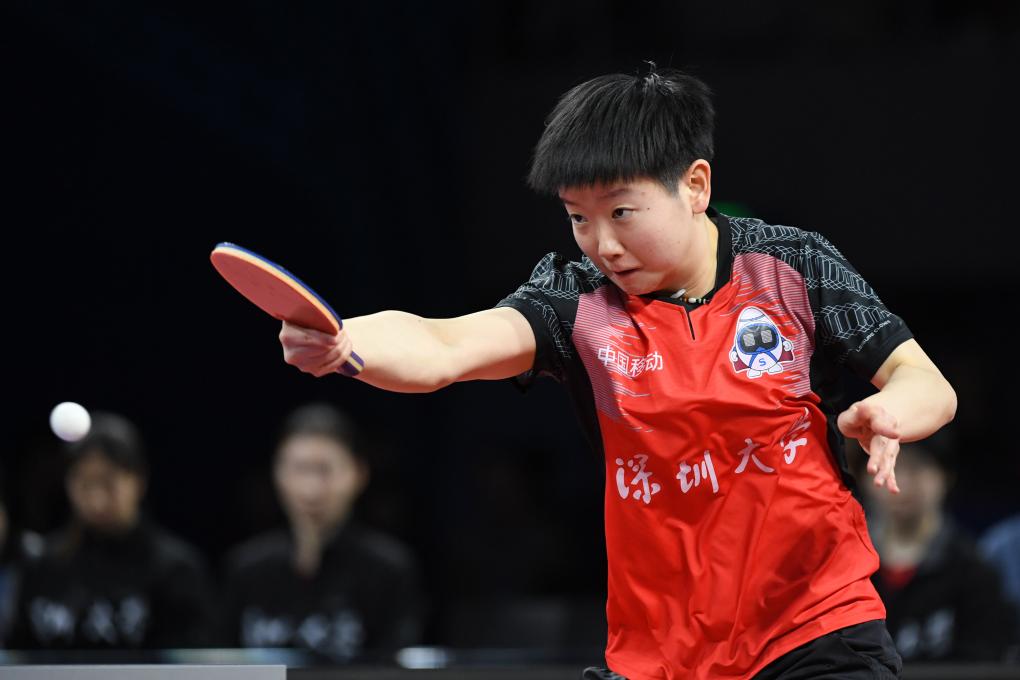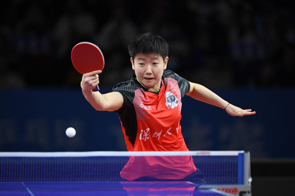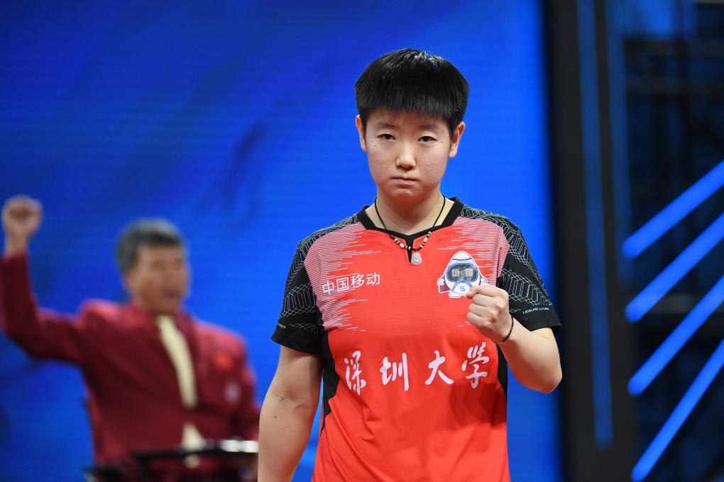 12月24日,深圳大学队选手孙颖莎在女单比赛中。她以2比3不敌山东鲁能队选手王曼昱。新华社记者 梁旭 摄