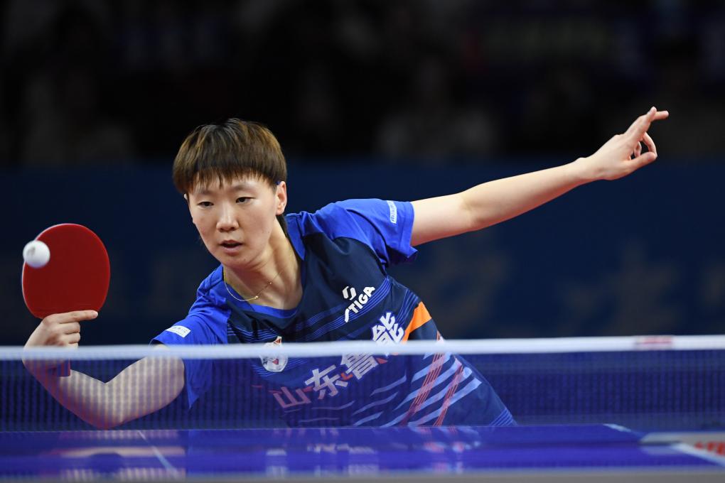 12月24日,山东鲁能队选手王曼昱在比赛中回球。她以3比2战胜深圳大学队选手孙颖莎。新华社记者 梁旭 摄