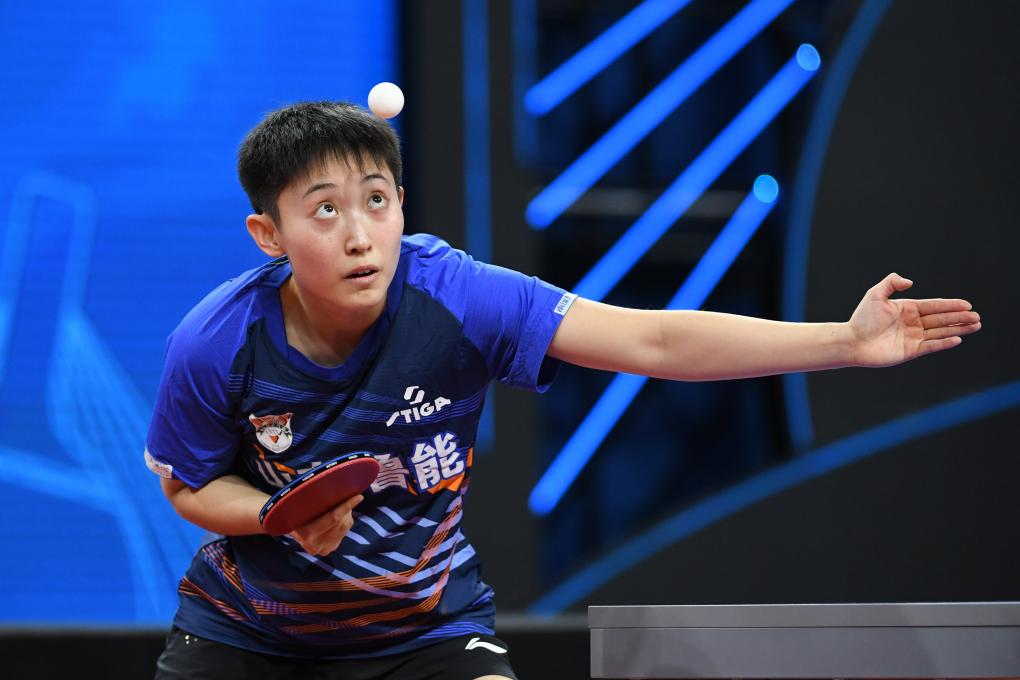 12月24日,深圳大学队选手孙颖莎在女单比赛中发球。她以2比3不敌山东鲁能队选手王曼昱。新华社记者 梁旭 摄