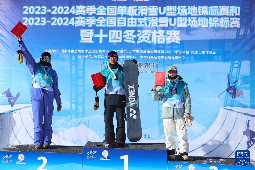 当日,在河北省张家口市崇礼区云顶滑雪公园举行的2023-2024赛季全国单板滑雪U型场地锦标赛暨第十四届全国冬季运动会资格赛公开组男子个人决赛中,北京市体育局选手张义威以95.60分获得冠军,北京市体育局选手王梓阳以91.00分获得亚军,辽宁省冬季运动管理中心选手谷奥以86.80分的成绩获得季军。