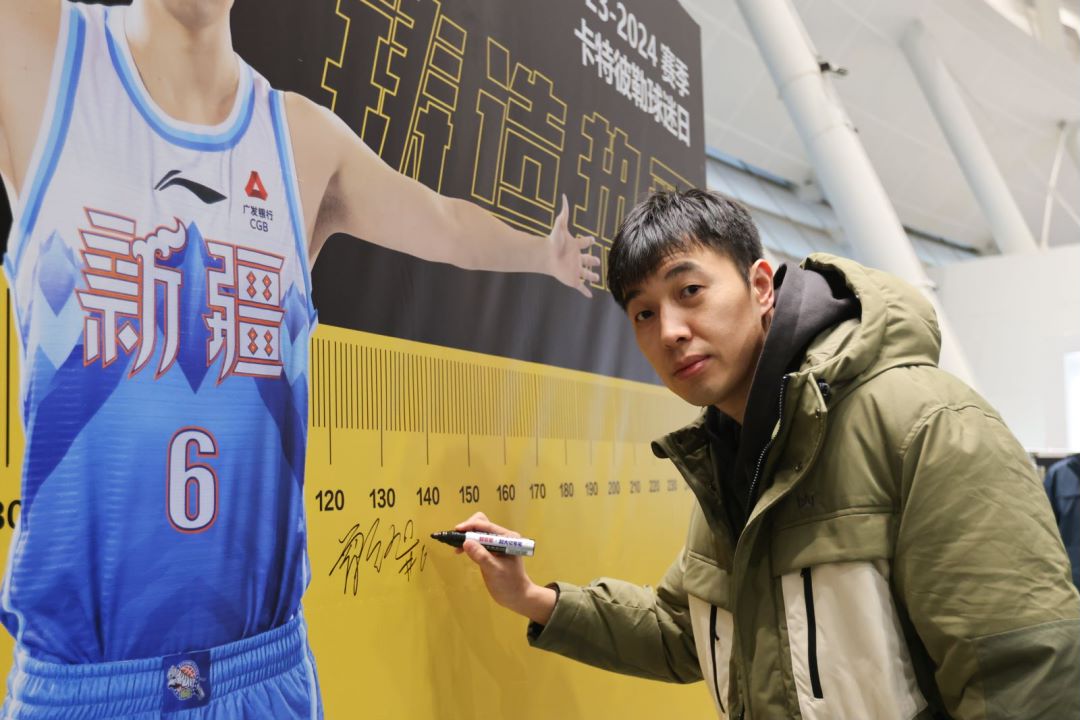 当日,在新疆男篮主场乌鲁木齐奥体中心体育馆内,新疆球迷见到了中国男篮前国手、前新疆男篮主力曾令旭。展区内巨大的曾令旭臂展背板也吸引许多球迷驻足,纷纷拍照卡打,与“曾令旭”PK臂展。