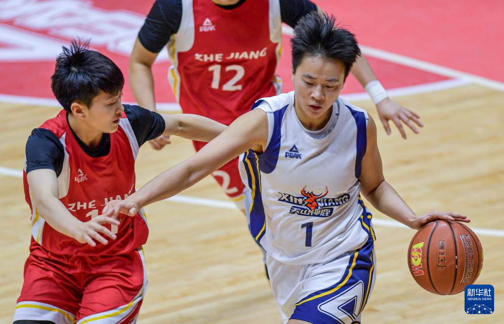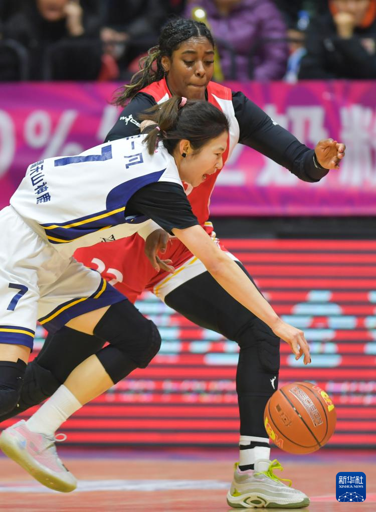 12月26日,新疆天山队球员李玉琼(右)在比赛中带球突破。新华社记者 王菲 摄