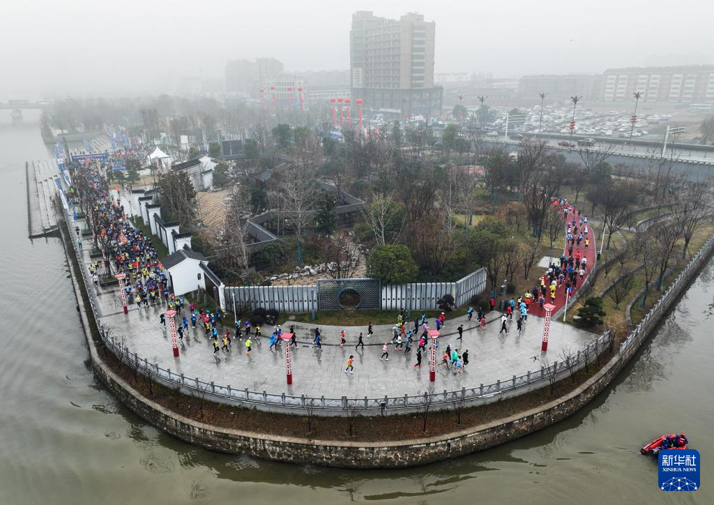 12月30日,跑步爱好者在比赛中(无人机照片)。新华社发 (顾继红 摄)