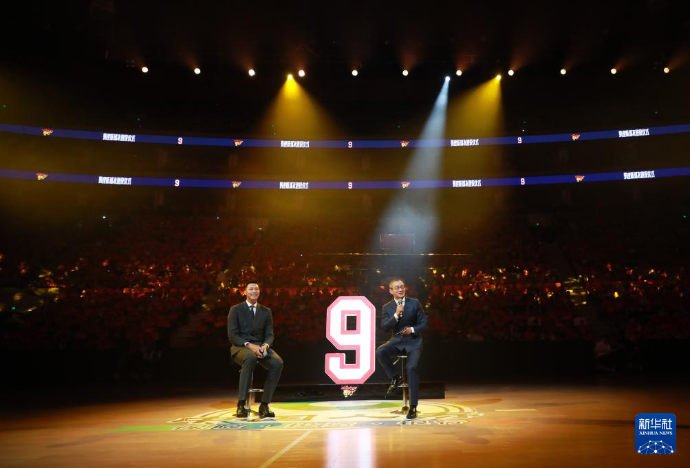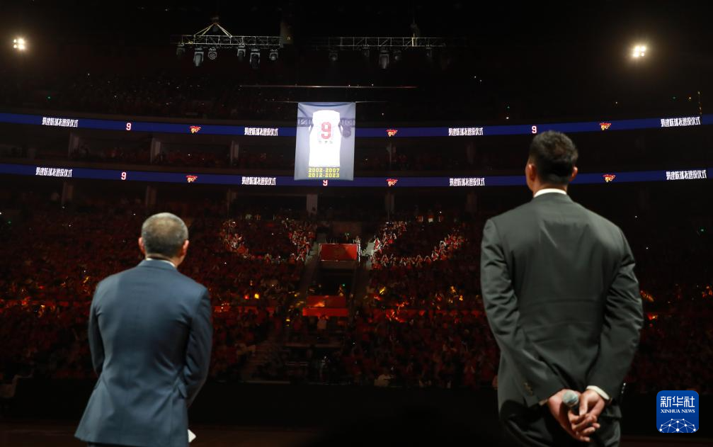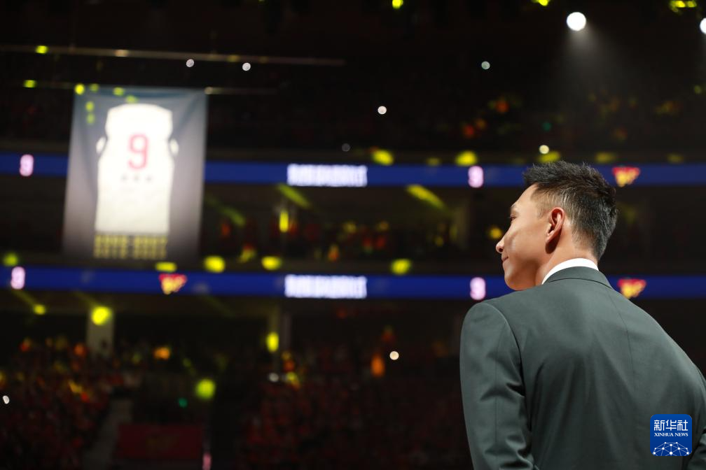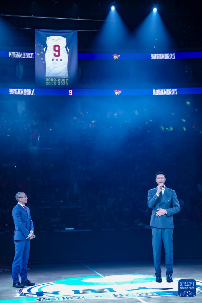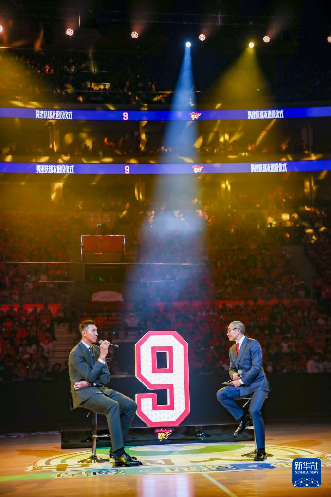 12月29日,易建联9号球衣在退役仪式上亮相。新华社发(郑家雄摄)