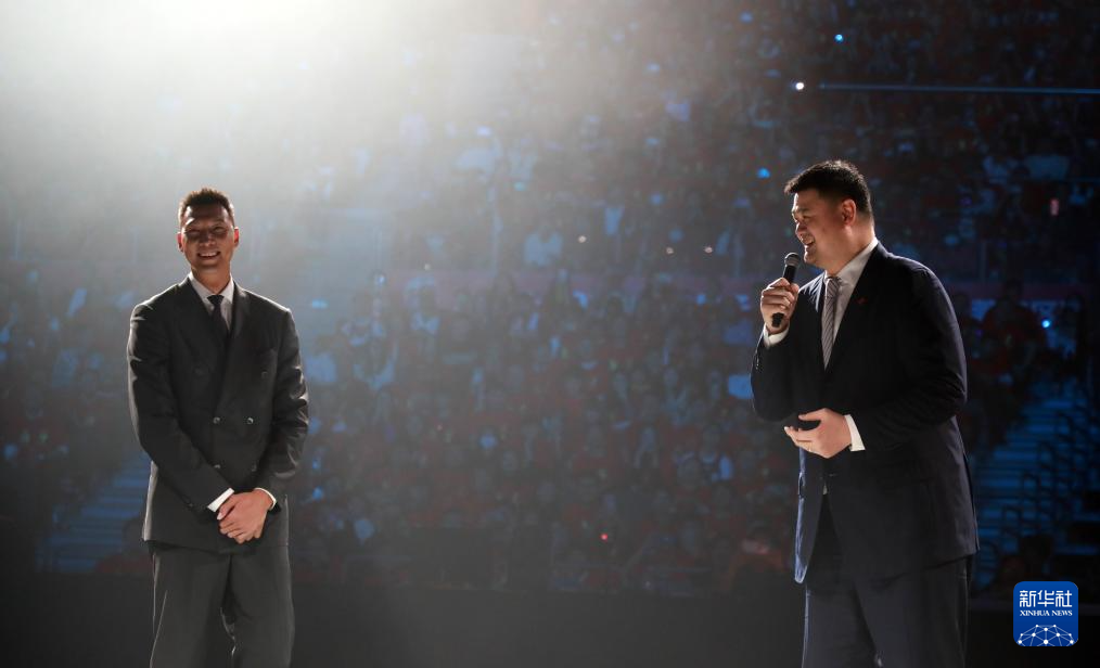 12月29日,中国篮球协会主席姚明(右)在仪式上讲话。新华社记者 黄国保 摄