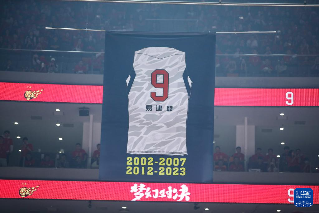 当日,易建联9号球衣退役仪式在广东东莞银行篮球中心举行。