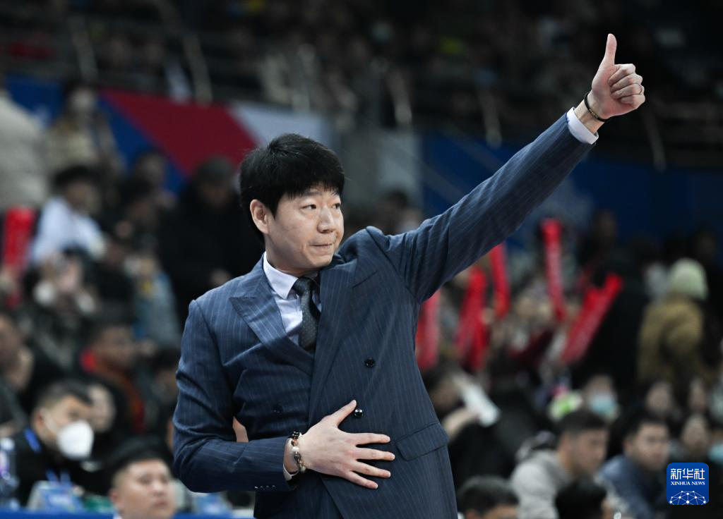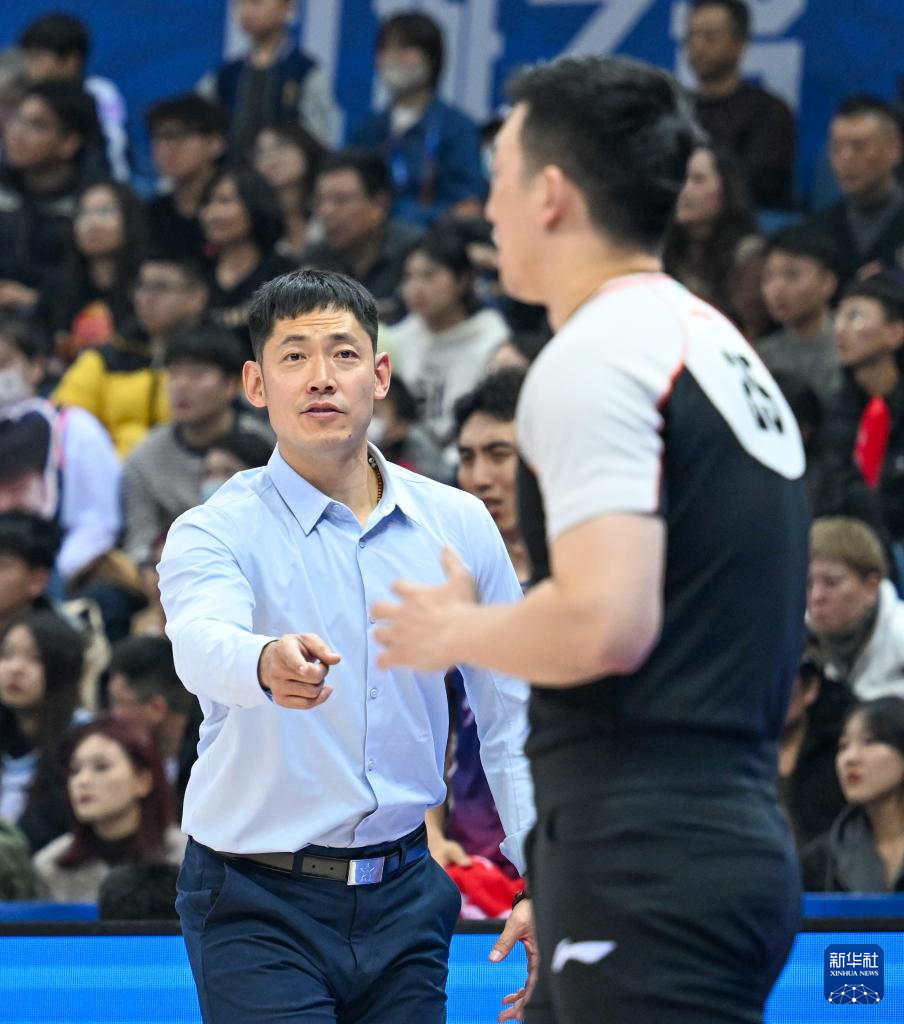 12月29日,新疆伊力特队主教练邱彪在场边指挥。新华社记者 孙凡越 摄