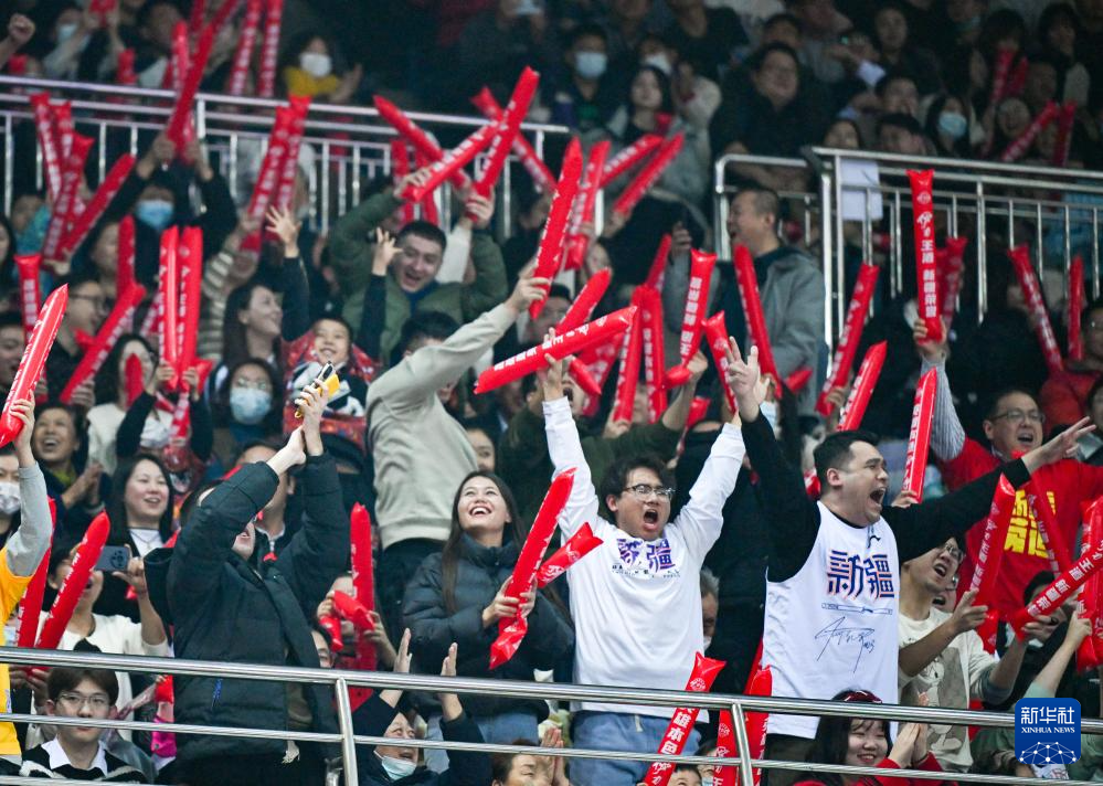 12月29日,新疆伊力特队球迷在看台上庆祝。新华社记者 孙凡越 摄