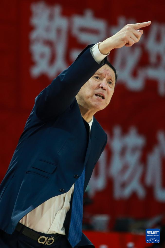 12月29日,四川金强队球员主教练张德贵在场边指挥。新华社发(彭志刚摄)