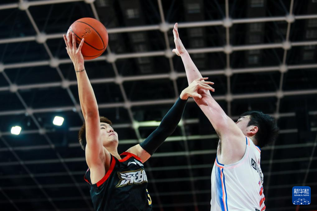 12月29日,深圳马可波罗队球员顾全(左)在比赛中投篮。新华社发(彭志刚摄)