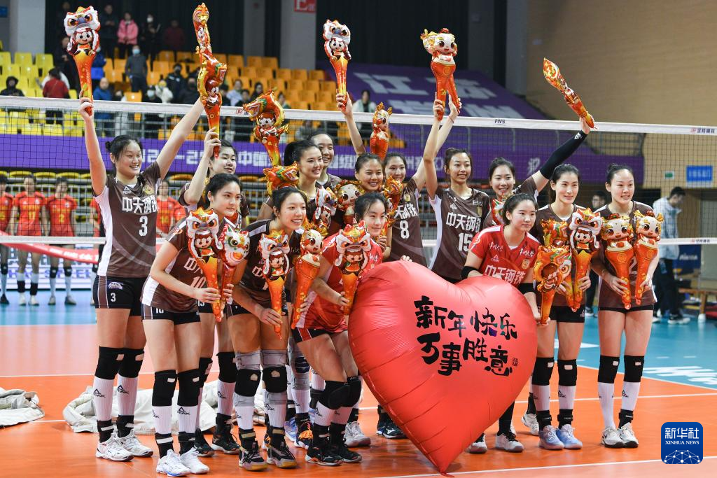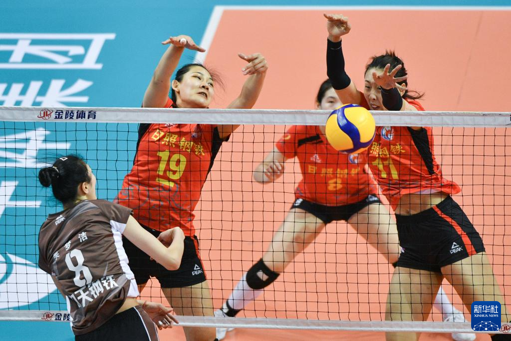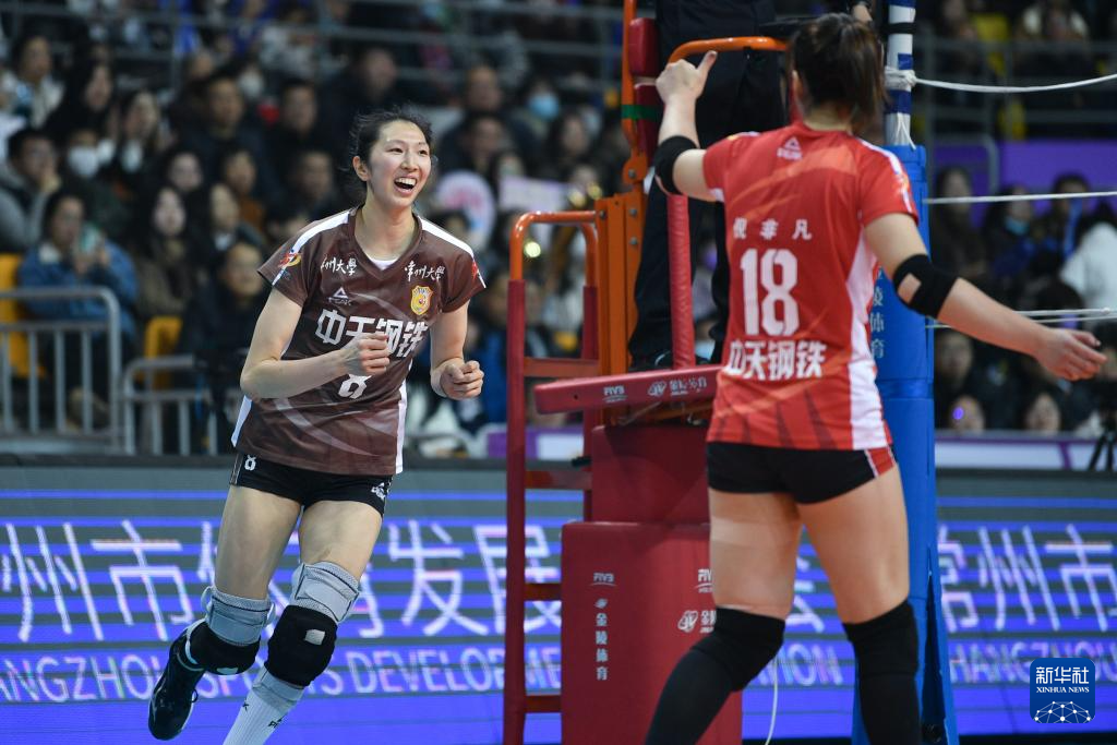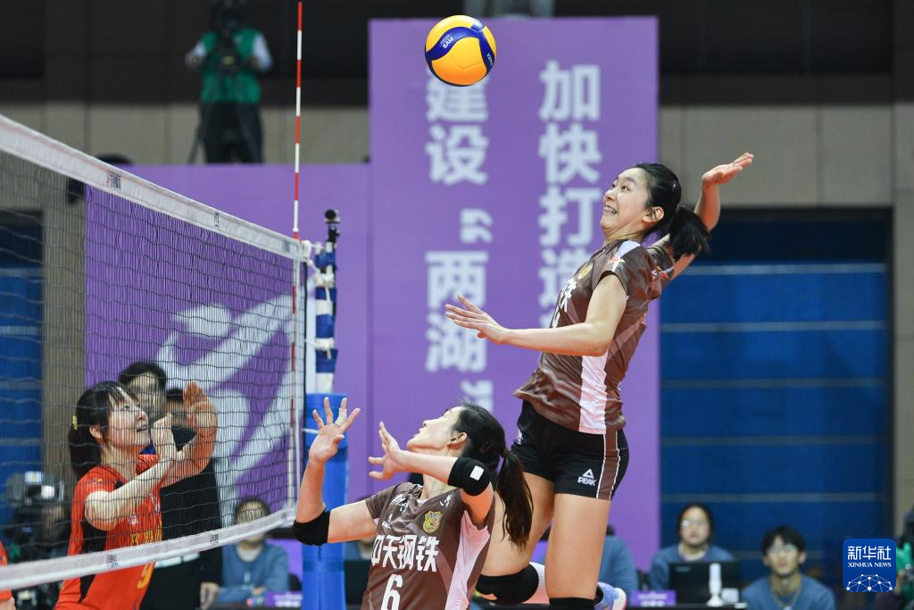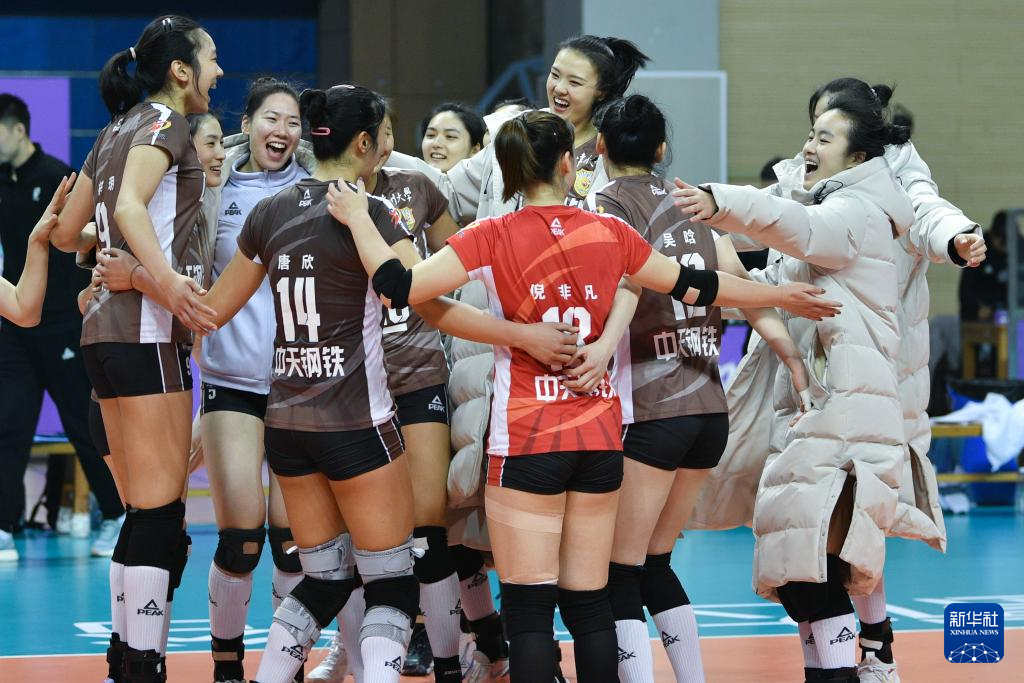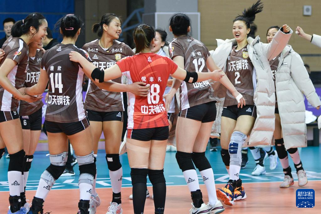 当日,在江苏常州举行的2023-2024赛季中国女排超级联赛第二阶段(四分之一决赛)第二回合比赛中,江苏中天钢铁队主场3比0战胜山东日照钢铁队,以2比0的总比分晋级四强。
