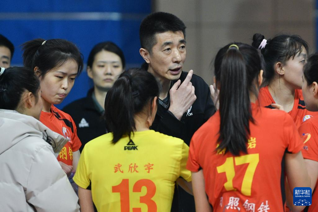 12月30日,山东日照钢铁队主教练安家杰(中)在比赛间隙指导球员。