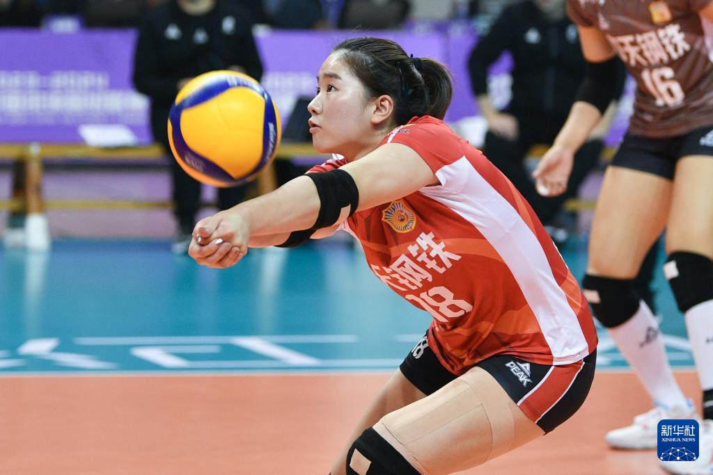 12月30日,江苏中天钢铁队球员倪非凡在比赛中接球。
