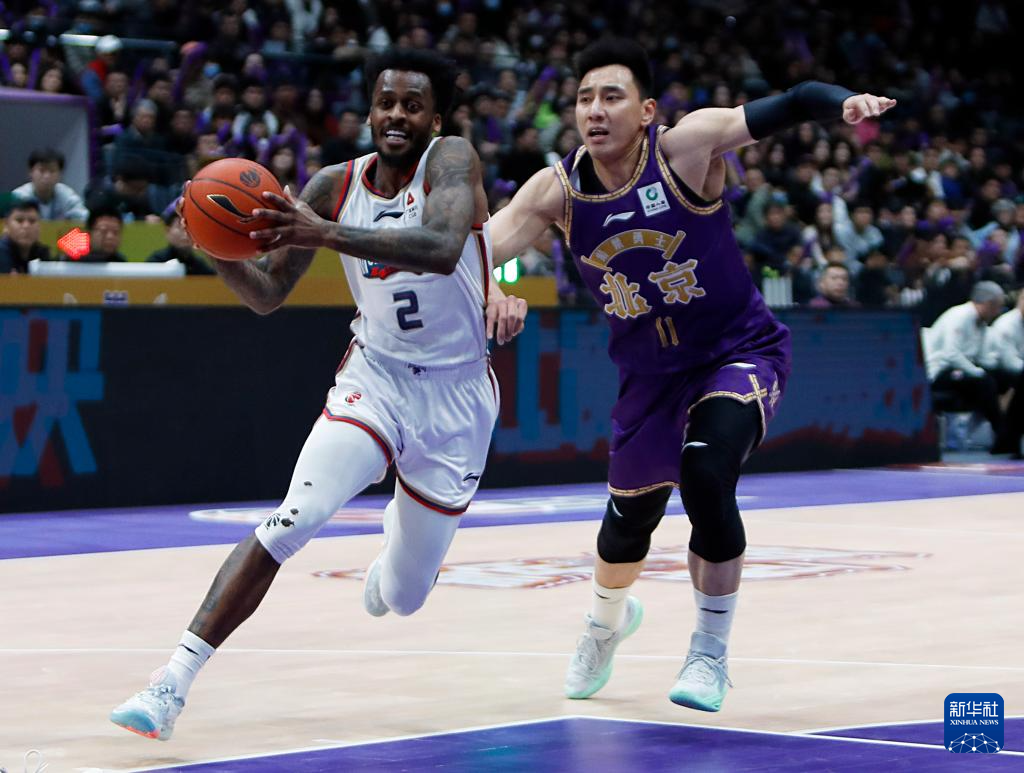 12月30日,南京头排苏酒队球员布莱克尼(右)在比赛中突破。