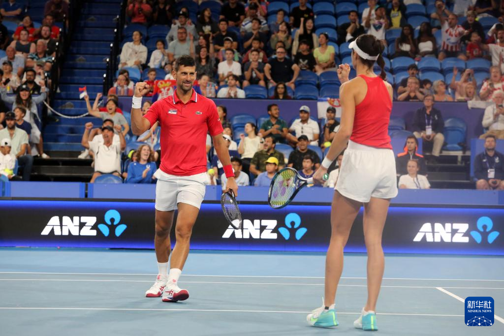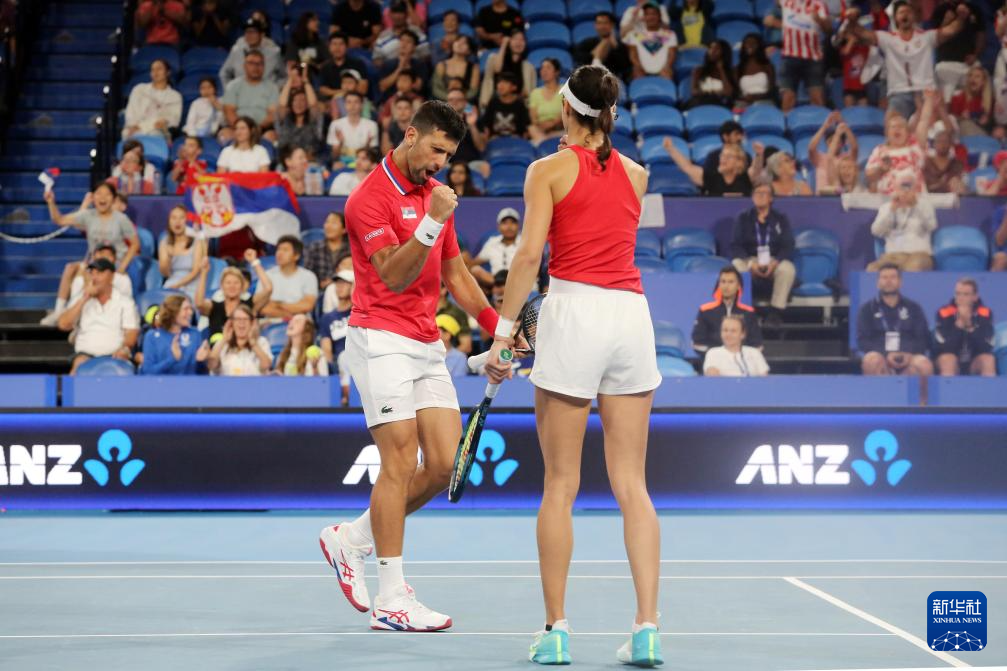 2023年12月31日,塞尔维亚组合焦科维奇(左)/丹尼洛维奇庆祝获胜。最终,焦科维奇/丹尼洛维奇2比1战胜中国组合郑钦文/张之臻。