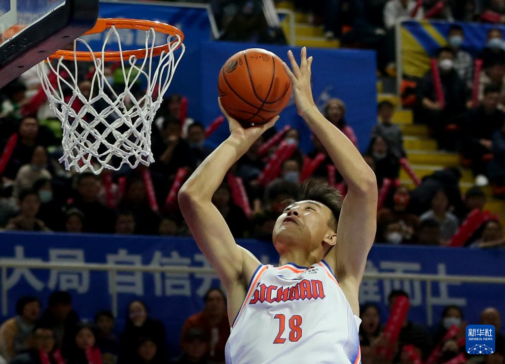 12月31日,四川金强队球员张大宇在比赛中上篮。