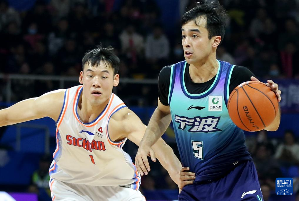 12月31日,宁波町渥队球员阿尔斯兰(右)在比赛中带球突破。
