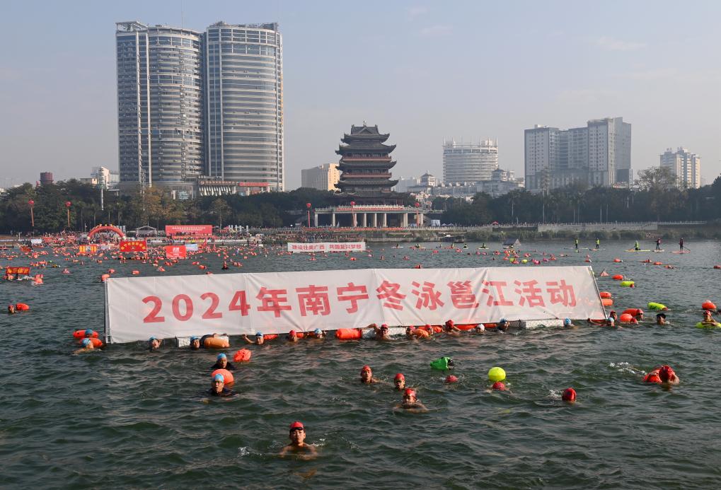 新华社南宁1月1日电(记者覃星星)2024年第一天,位于北回归线以南的广西南宁市阳光明媚。在冬日暖阳下,南宁冬泳邕江活动如期上演。来自国内各地的3000多名游泳爱好者在邕江中劈波斩浪,以自己的节奏“泳”往直前,畅享冬泳带来的乐趣与挑战。