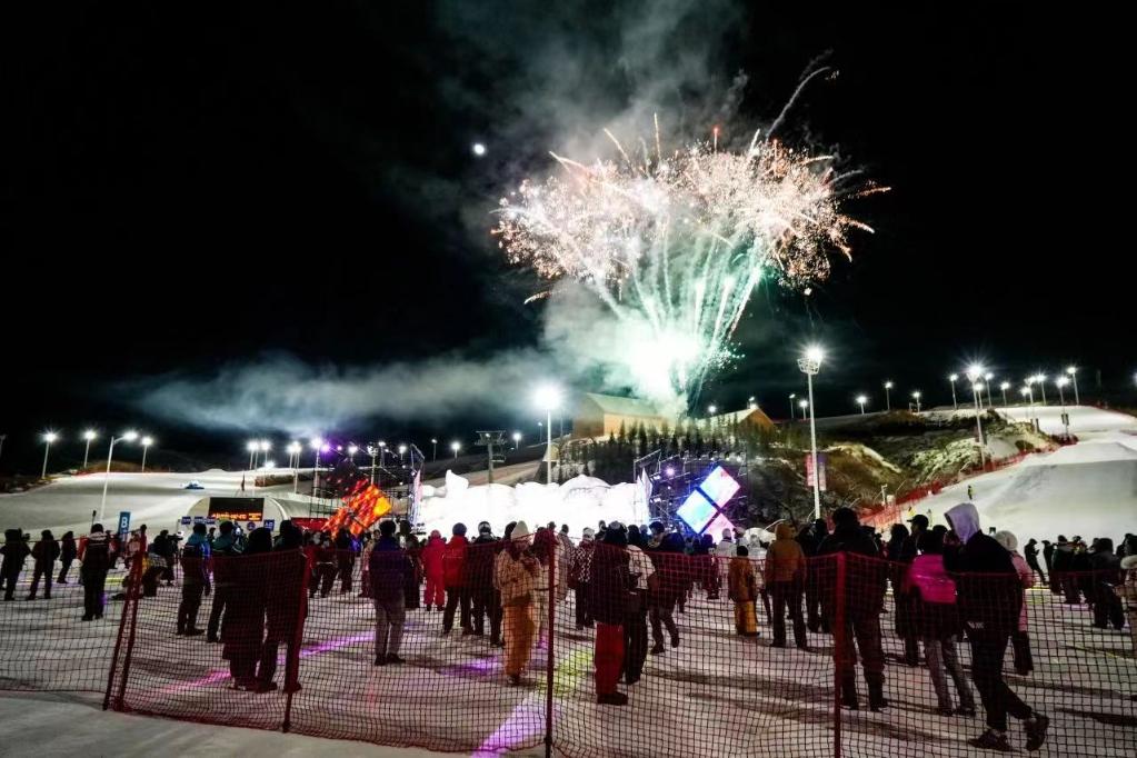 图为马鬃山滑雪场的跨年夜晚